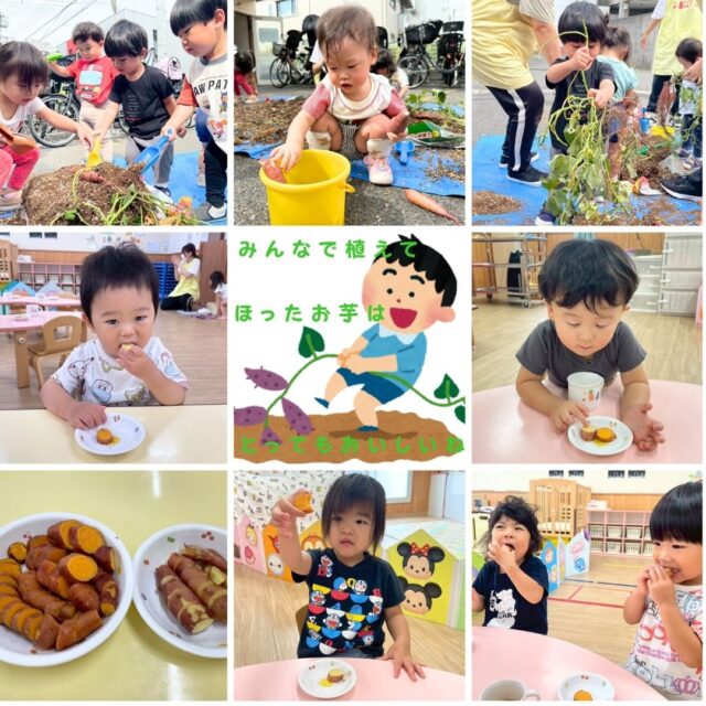 みんなで育てたさつまいもは給食の先生がおやつにふかし芋にして出してくださいました!「おかわり!」と何度もおかわりをして食べている子もいました。自分たちで育てたお芋は格別に美味しかったのでしょうね👍✨