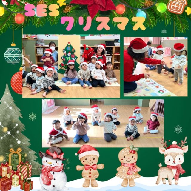 次の日は、SESのクリスマスレッスンです。先生もクリスマスカラーの服を着て雰囲気ばっちり👍✨ツリーのタペストリーにみんなでオーナメントを飾り、クリスマスのカード釣りをして楽しみました♪ 楽しいイベントが続き大満足の子どもたちでした🎄😊